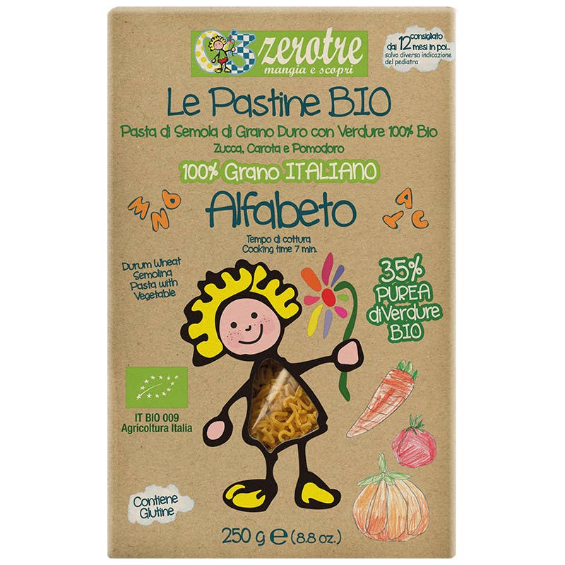 High quality durum wheat semolina pasta, 100% organic, mixed with 35% fresh organic puree (not freeze-dried) of Pumpkin, Carrot and Tomato. We suggest pairing it with Organic Tomato and Carrot Sauce from the ZEROTRE line, prepared by slowly boiling tomato pulp, just like it used to be done. Ideal for dressing your children's first “pasta dough”. Recommended from 8 months onwards unless otherwise indicated by the pediatrician.